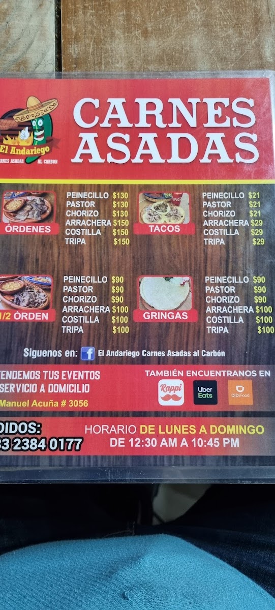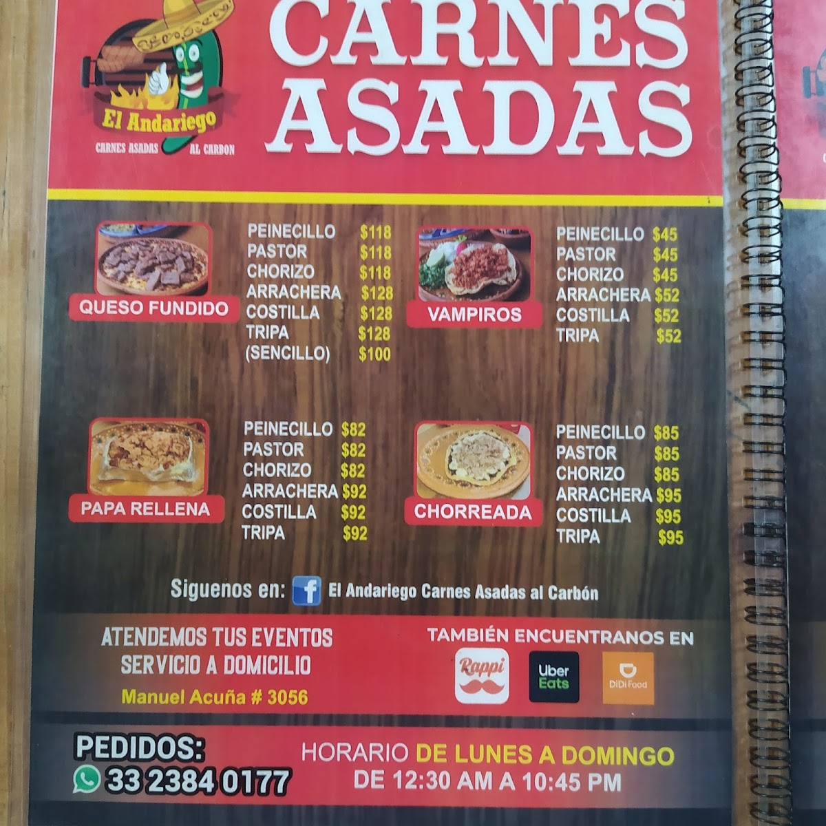 Welcome to Carnes Asadas El Andariego Suc. Country, a hidden gem located in Guadalajara, Mexico. This vibrant eatery specializes in mouthwatering tacos and hearty meat dishes, offering a menu that honors traditional Mexican flavors. From the delectable Taco Gringo featuring soft flour tortillas, to the handmade Taco de Tripa and Taco de Labio, each item is crafted with care and a passion for quality.